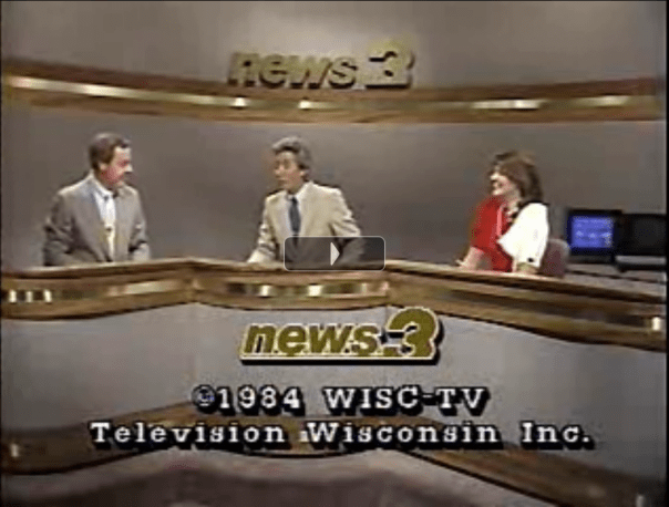 And then came the 1980s. O’Connell is in the middle with sports director Van “Mount Horeb toppled Verona” Stoutt on the left and, I believe, meteorologist Dana Tyler, now at WFRV-TV in Green Bay, on the right.