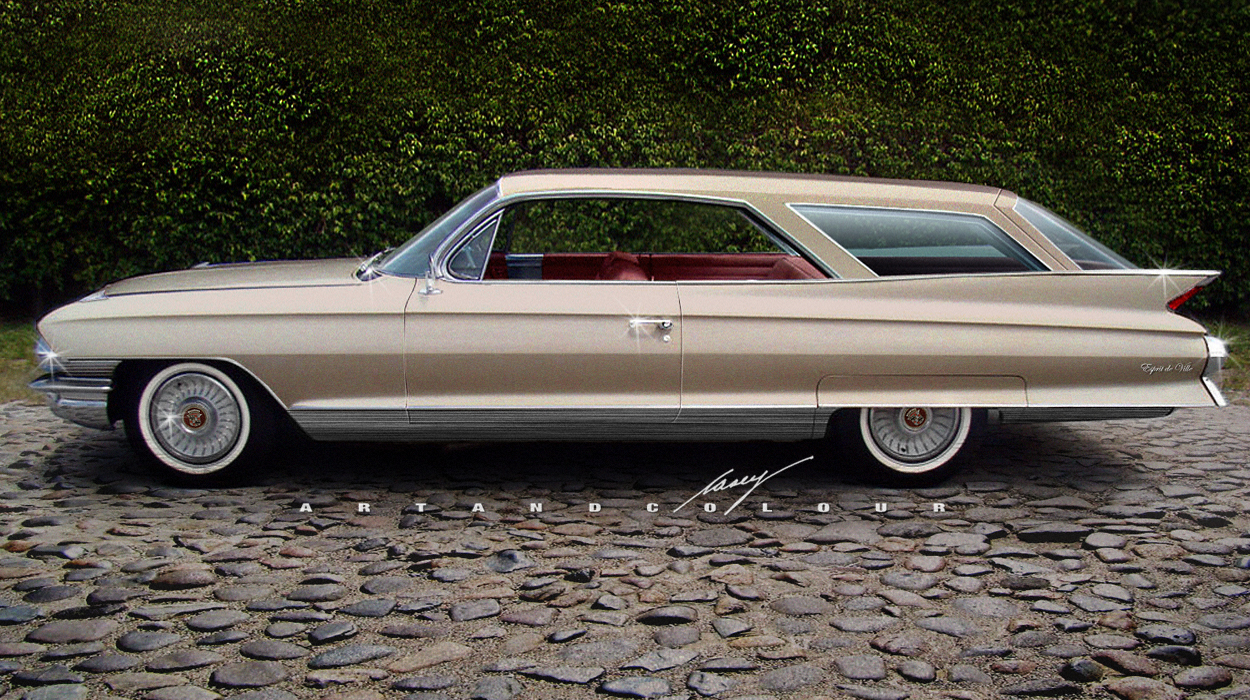 The proprietor of ArtandColourCars has several drawings of cars Cadillac should have done, including a 1961 station wagon …