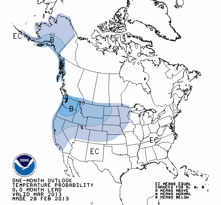 Either the CPC is incompetent, or Mother Nature is making the CPC look bad. This was the March temperature forecast released at the end of February: