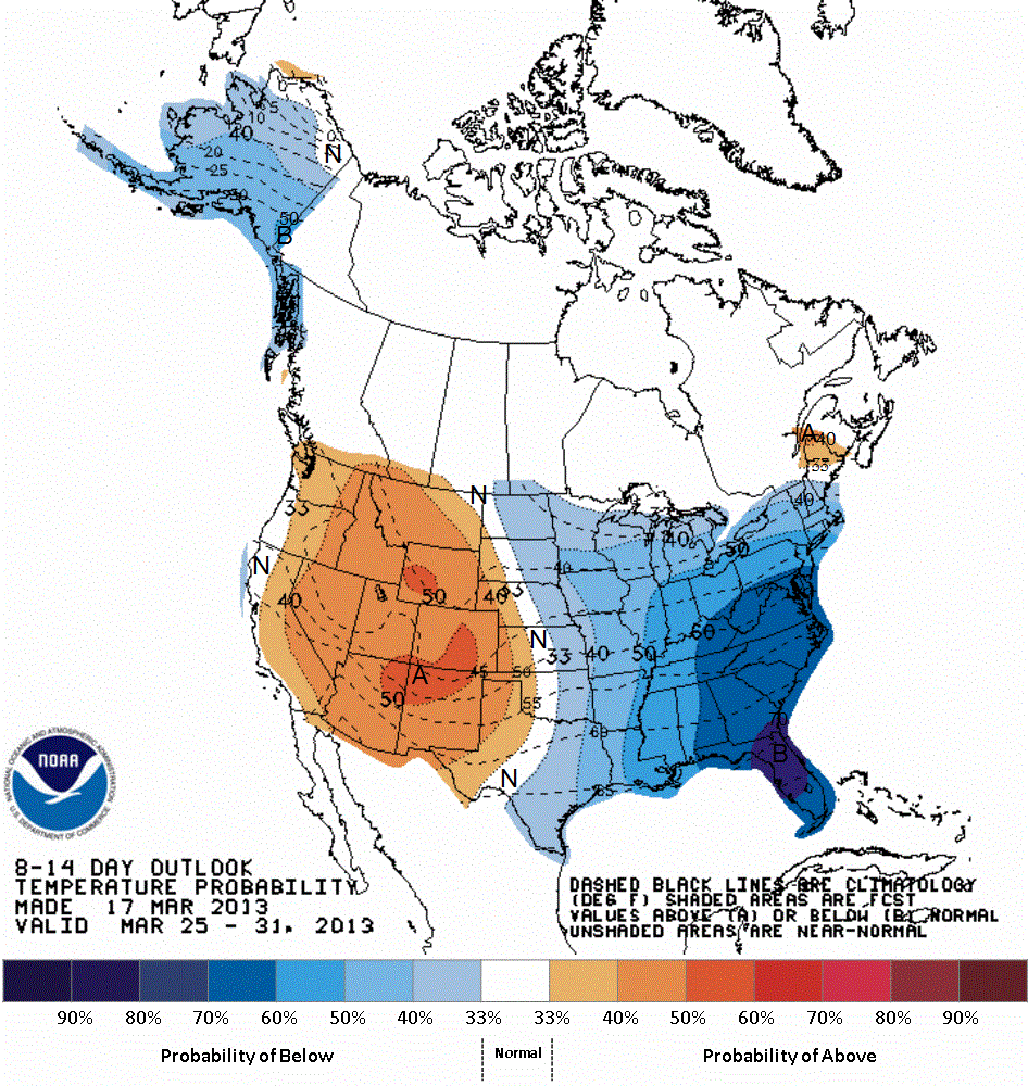 … is the CPC’s 8- to 14-day forecast — basically next week’s weather. As you can guess, blue means cold.