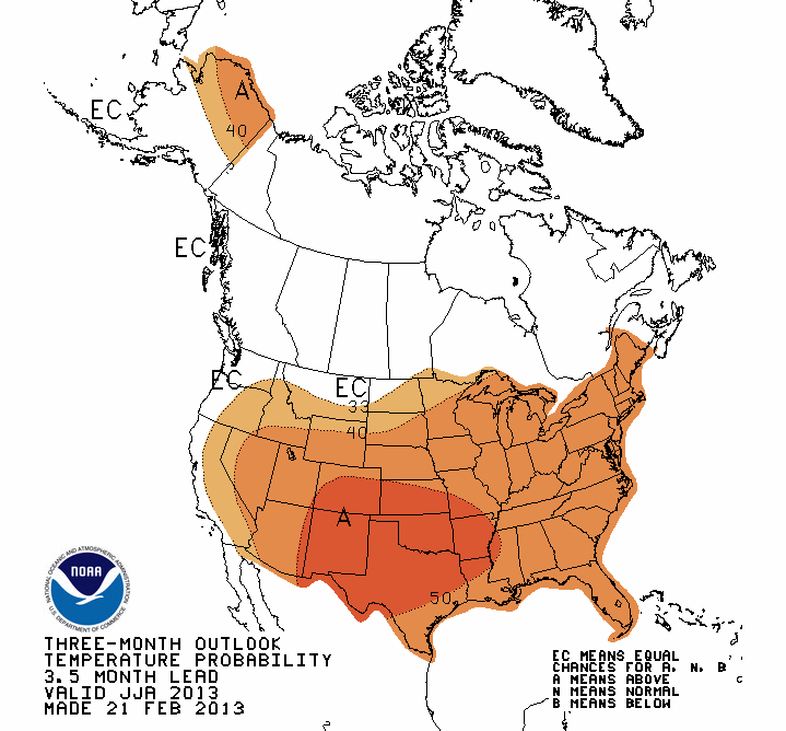For what it’s worth, the National Weather Service’s Climate Prediction Center is predicting, so far, a pretty normal summer in terms of temperature …